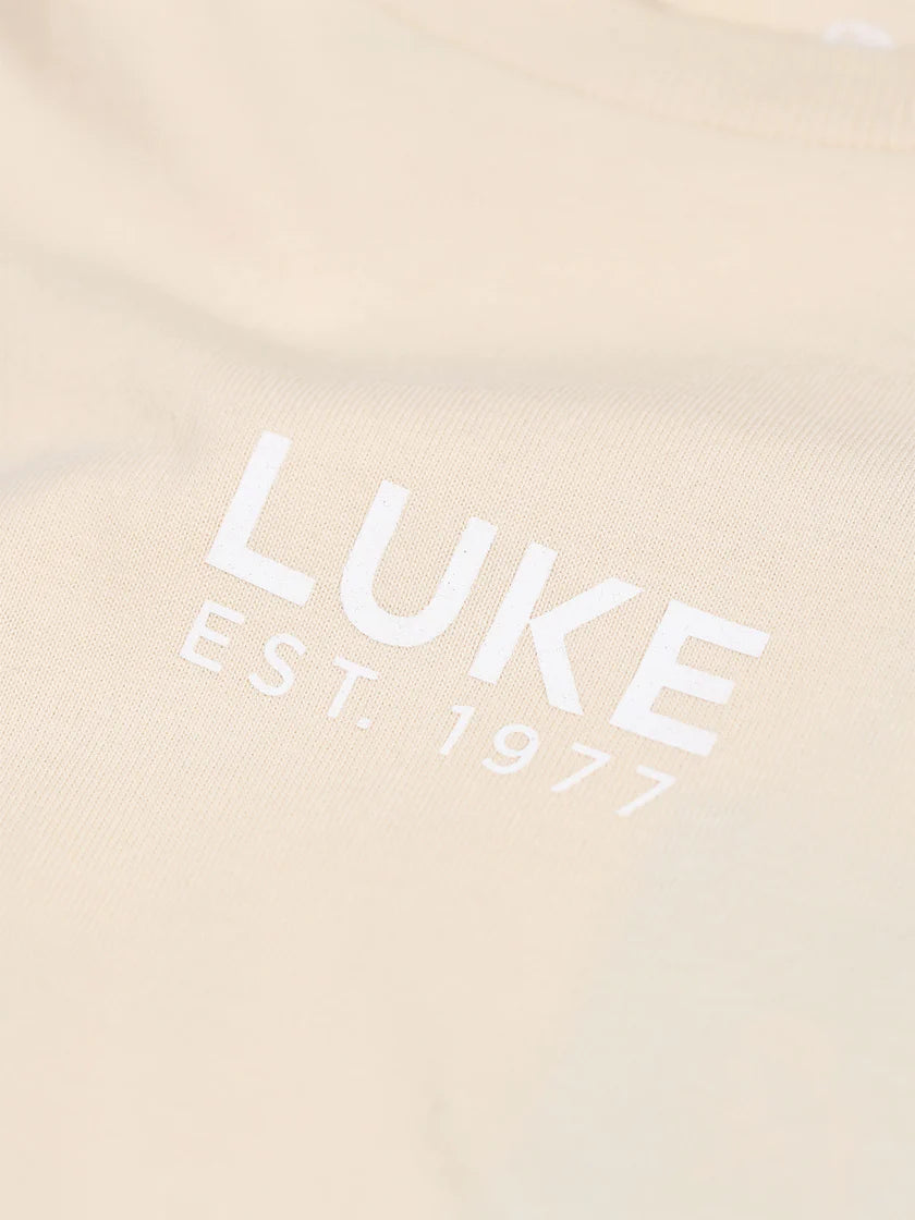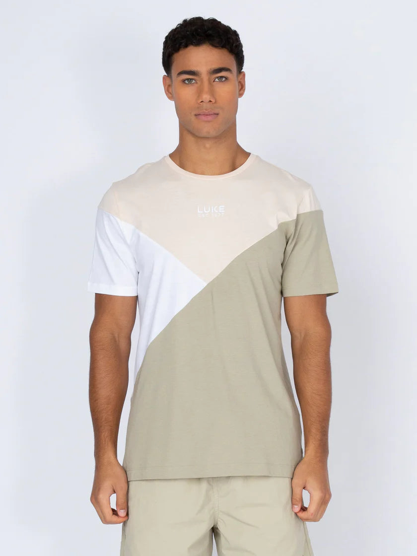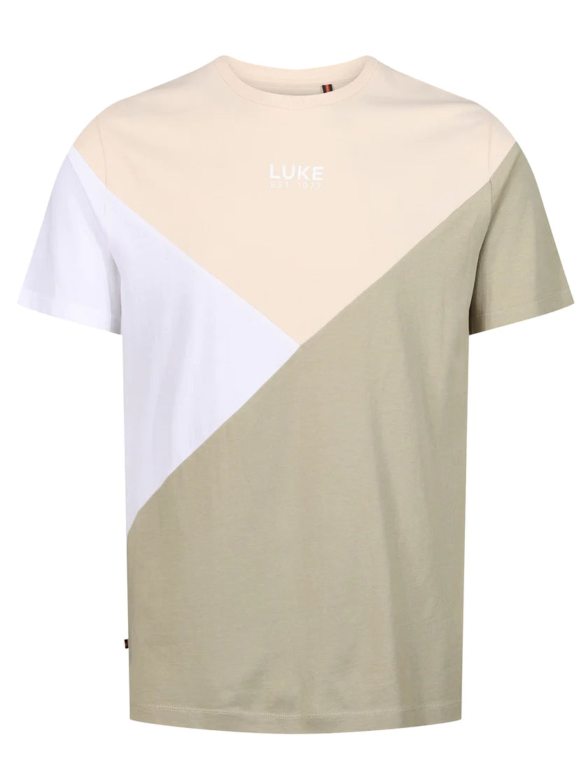 Inject colour into your Spring wardrobe with this luxury crew neck tee from LUKE. Crafted from a premium pure cotton, it features geometric cut and sew panels and is fitted with a soft rib neck for all day comfort. The look is then signed off with a raised LUKE EST. 1977 text print on the chest.