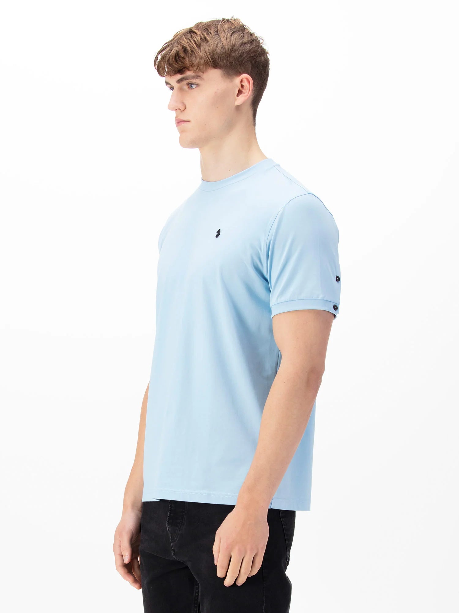 The wardrobe essential crew neck t-shirt from LUKE is cut from a luxury modal blend, it’s accented with the brand’s iconic black lion rivet on the left chest and features a cuff placket and button detail.